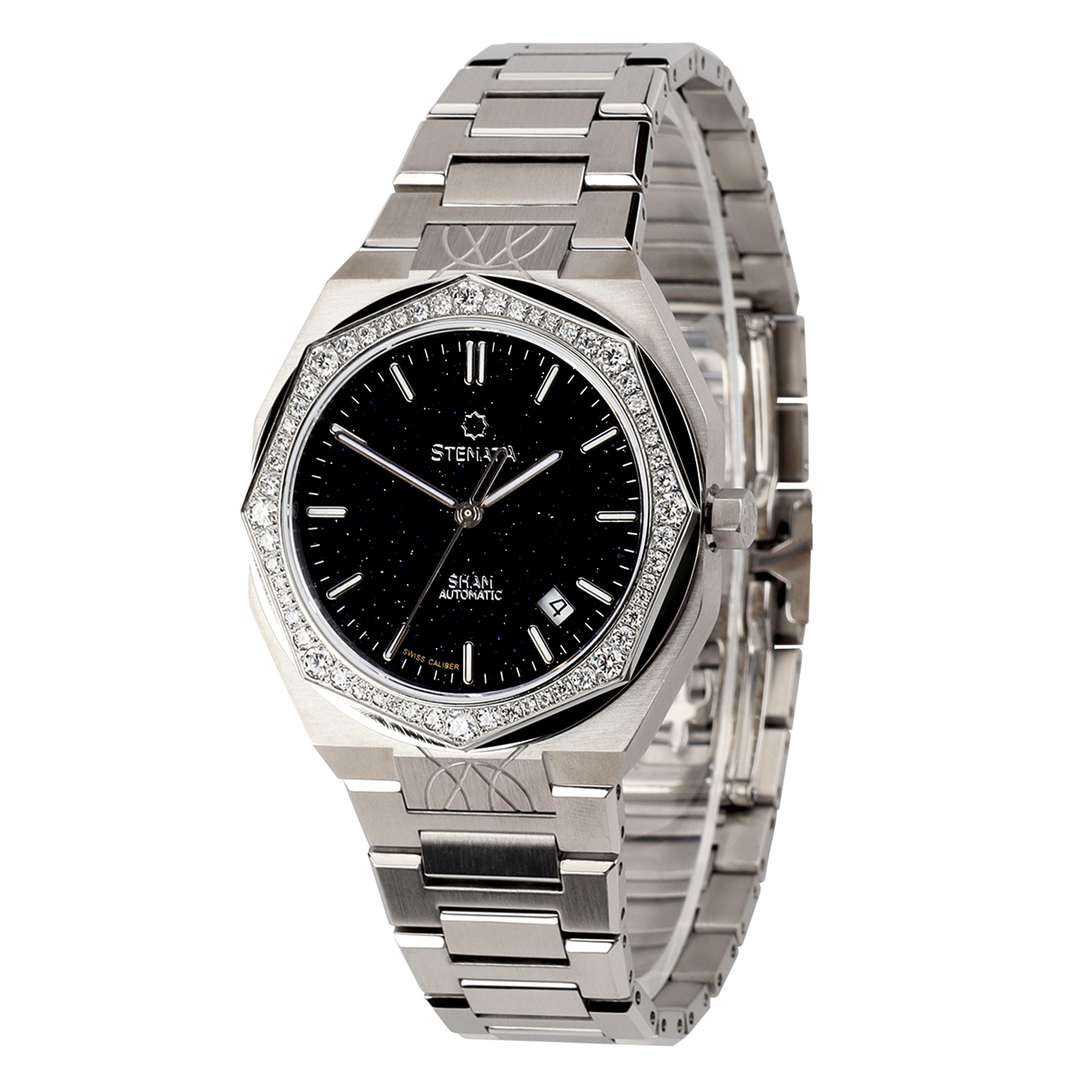 Cu un diametru echilibrat de 38.0 mm și un cadran opalescent înstelat – asemenea cerului în cea mai clară noapte de vară – modelul se remarcă printr-o prezență nobilă și subtilă. Brățara metalică lustruită conturează ferm acest echilibru vizual, în timp ce mecanismul ETA 2824-2 asigură precizie, fiabilitate și o experiență horologică autentică.